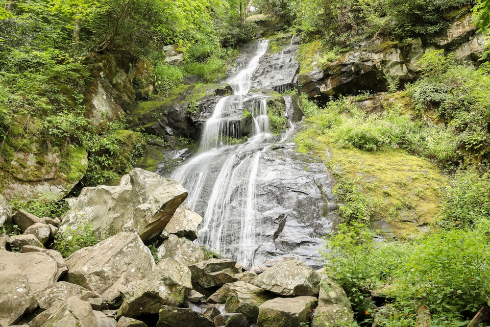 Hike to a Smoky Mountain waterfall: one of the best outdoor activities in the Smoky Mountains during summer is a waterfall hike! A couple of less-crowded hikes with waterfalls include Hen Wallow Falls and Huskey Branch Falls!